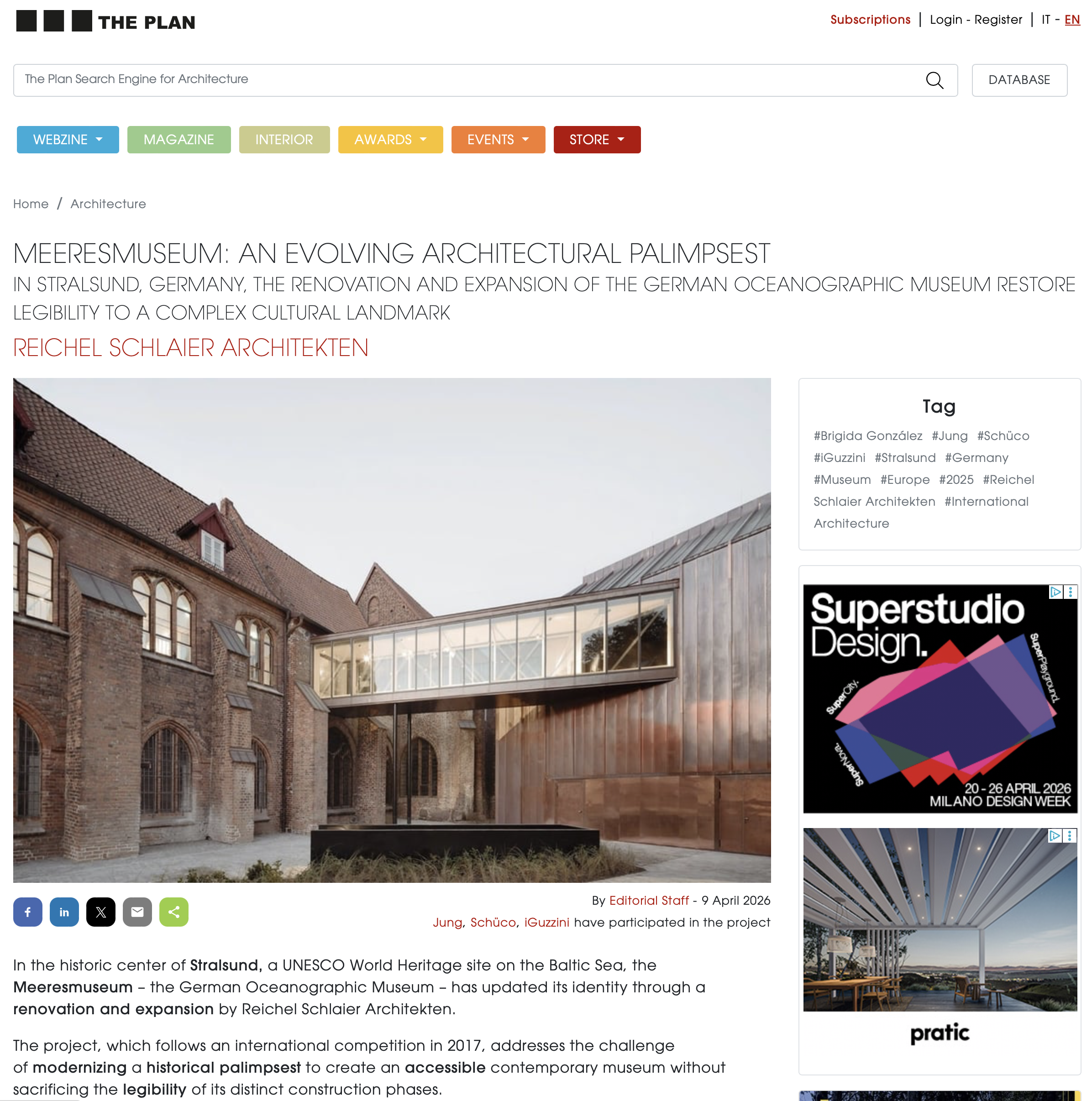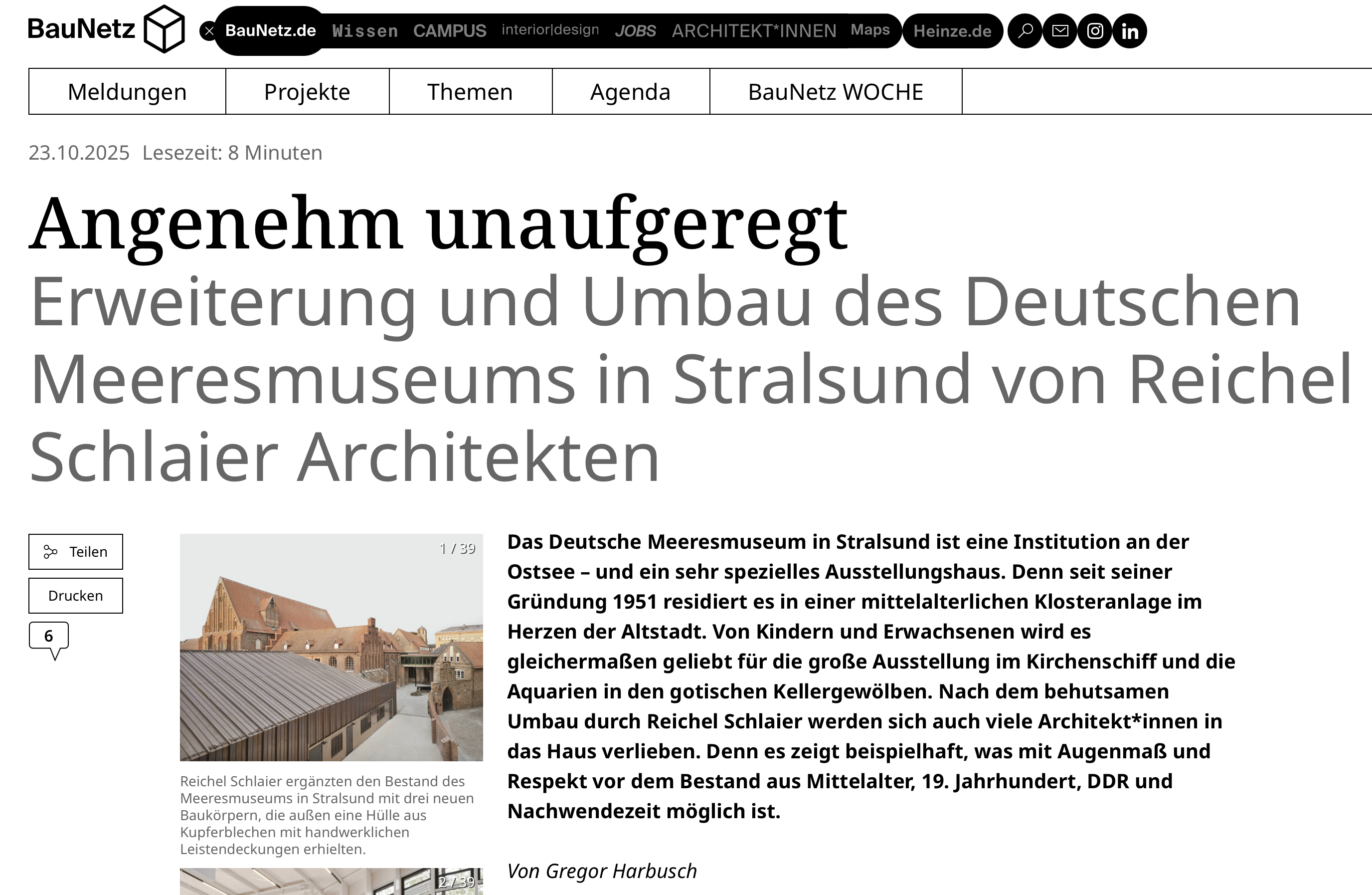 "Neue Gewohnheiten:Wandel durch Anpassung" - unter diesem Titel ist unser Meeresmuseum in der aktuellen Ausgabe von Die Architekt in einem großartigen Artikel von Christian Juhlke vorgestellt worden. Wir freuen uns sehr über diese Veröffentlichung!